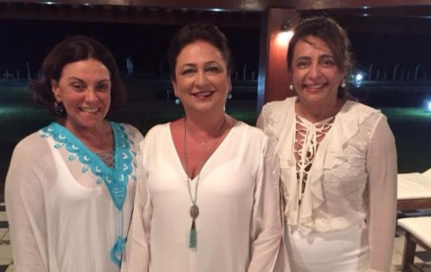 A ministra Kátia Abreu passou o Ano Novo na Bahia, terra do marido, Moisés Gomes, ao lado dos filhos dela e dele, na casa de amigos próximos. Na foto com a empresária tocantinense Dora e com a embaixatriz Marina Jardim.