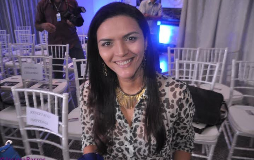 A jornalista Alessandra Bonfim Bacelar Abreu Adrian prestigiando o desfile de noivas da estilista Vanda Martins.