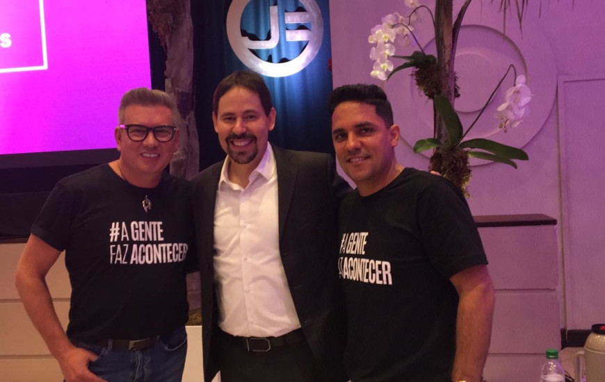 O empresário Lucas Garcia participa do Encontro Nacional de Franqueados, em Gramado/RS, de uma grife de sapatos. Na foto, está com o palestrante Luís Arthur Nogueira, jornalista e economista e com o design Jorge Bischoff. As JB lovers podem esperar muitas novidades por aí.
