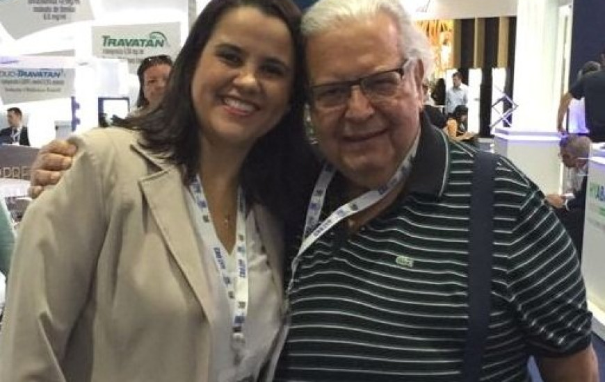 A oftalmologista Dayene Brandão ao lado do oftalmologista Cléber Godinho, no 60º Congresso Brasileiro de Oftalmologia, realizado no Centro de Convenções de Goiânia (GO).