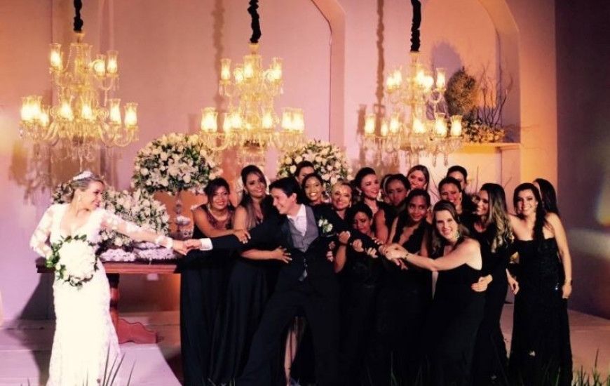 O casamento de Kátia Chaves e de Leonardo Cintra, fotografado por Vinnie Parente, teve suas particularidades. As madrinhas entraram no clima e atenderam o pedido da noiva na hora de escolher o vestido: a cor foi o preto.