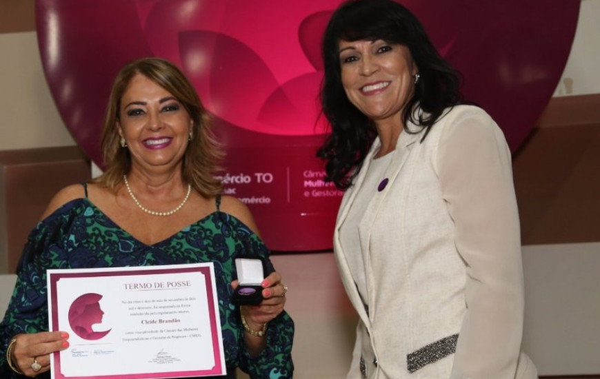 Na noite desta terça-feira, dia 22, a diretoria da Câmara das Mulheres Empreendedoras e Gestoras de Negócios – CMEG tomou posse em cerimônia realizada no auditório da Fecomércio Tocantins. Para estar à frente da CMEG, foram escolhidas as empresárias Maria de Fátima de Jesus e Cleide Brandão, como presidente e vice-presidente, respectivamente.