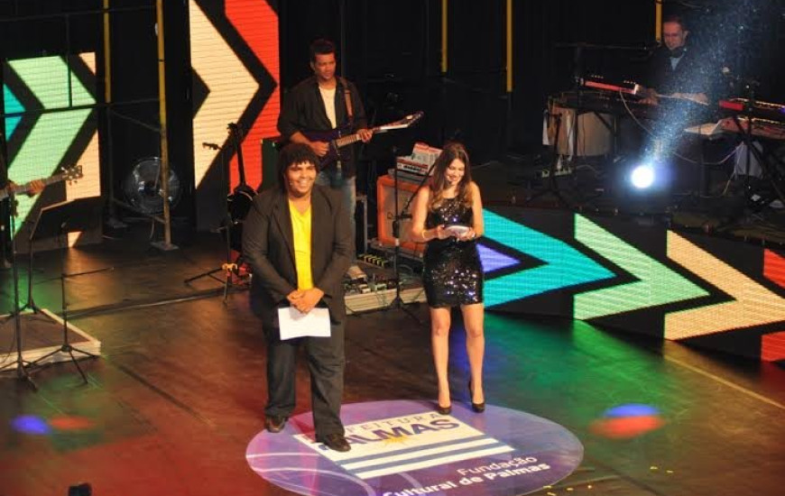 O humorista Paulo Vieira foi um show a parte. Ele e a jornalista Patrícia Bernadon foram os mestres de cerimônia do na I Mostra Premiada de Música.