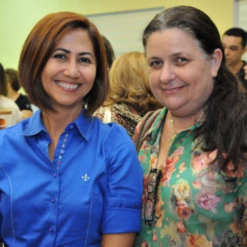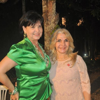A empresária Fátima Fernandes e a presidente da Liga Feminina de Combate ao Câncer, Alaize, no evento do Sinduscon