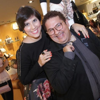 A Design de moda Patrícia Fregonesi e o colunista social Jotta Nunes durante a inauguração da nova loja Carmen Steffens em Araguaína.