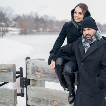 O sertanejo Edson Cadorini e a esposa Deia Cypri renovam os votos do casamento em nova lua de mel na neve de Nova York, nos Estados Unidos.