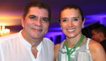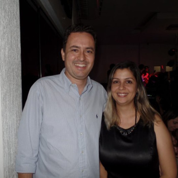 O Defensor Público-Geral nomeado Murilo da Costa Machado e a esposa Karinne de Toledo Gomes da Silva, durante comemoração de final do ano da Defensoria na Churrascaria Portal do Sul.