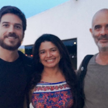A cineasta Eva Pereira (Cunhã Porã Filmes), diretor Henrique Goldman e o ator global Marco Pigossi durante escolha de elenco do filme que será rodado no Tocantins, “ Em nome da Morte”.