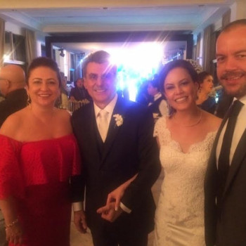 A senadora e ministra da Agricultura, Kátia Abreu e seu marido, Moisés Pinto Gomes prestigiaram na noite deste sábado, 3, a cerimônia de casamento do senador Romero Jucá (PMDB) e sua noiva Rosilene, realizada em Brasília, no Recanto das Ág...
